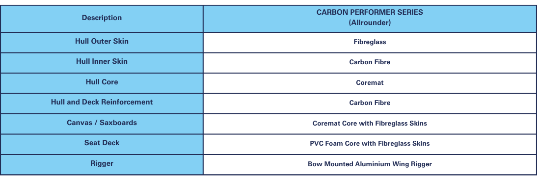 The Carbon Performer Series is designed to be light, give reliable stiffness and provide great transmission of power into the water while remaining enduring for every day use.